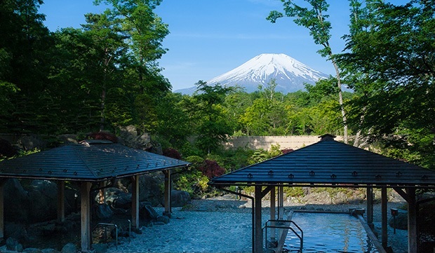 さっきまで登ってきた富士山を眺めながら、ゆっくりと疲れを癒せます。