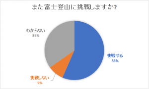 2019年度のアンケートをお答え頂きました皆様が、アンケートの最後にまた富士登山に挑戦しますか?という質問をなげかけてみました。